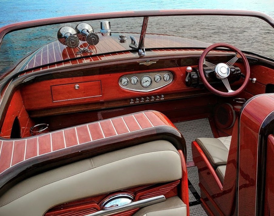 Restoration of the Stenander Family’s 1993 Streblow 23 Custom V-Drive Sport In the fall of 2023, the Stenander family acquired a 1993 Streblow 23 Custom V-Drive Sport, a timeless vessel that they enjoyed for a full summer on the water. Eager to make it their own, they entrusted Streblow’s expert craftsmen to revitalize and customize both the interior and exterior, restoring the boat to its full glory with modern upgrades and classic charm. Deck and Varnish At Streblow, our varnish team is uncompromising in their pursuit of perfection, and this boat exemplifies the artistry and precision that define our work. To bring the vessel back to showroom condition, we: Stripped away all existing varnish to reveal the raw beauty of the wood on the Hull and Deck, Applied over 16 meticulously layered coats of premium varnish, ensuring a flawless, mirror-like finish that enhances durability and showcases the wood’s natural grain. Removed the teak strips and underlying plywood from the deck. Installed new, expertly crafted mahogany planking on both the fore and aft decks, seamlessly blending tradition with renewed elegance. Interior The Stenander family envisioned an interior that balanced bold style with timeless sophistication. After careful consideration, they chose a striking color palette of “Nordic Blue” and “Rouge Red,” accented with crisp white for a vibrant yet refined look. Key interior upgrades include: A modernized audio experience with a state-of-the-art stereo system featuring Bluetooth connectivity, allowing seamless music streaming for unforgettable moments on the water. Reupholstered seating and surfaces, crafted with premium materials to ensure comfort, durability, and aesthetic harmony. With added Phillipine Mahogany accents to seat backs. Exterior To elevate both form and function, we reimagined the boat’s exterior with innovative upgrades: Introduced a redesigned swim platform, meticulously crafted to complement the boat’s iconic splash rails. This updated design enhances both aesthetics and accessibility, creating a cohesive and striking profile. Installed the advanced “Zip-Wake” fast-acting interceptor system, a cutting-edge dynamic trim control solution. Unlike traditional trim tabs, Zip-Wake offers superior efficiency with: Reduced drag for improved performance. Enhanced lift for smoother handling. Fully automatic pitch and roll control, ensuring a stable and comfortable ride in varying conditions. The revitalized 1993 Streblow Custom V-Drive Sport is now a stunning blend of classic craftsmanship and modern innovation, ready to provide the Stenander family with countless more seasons of adventure and elegance on the water.