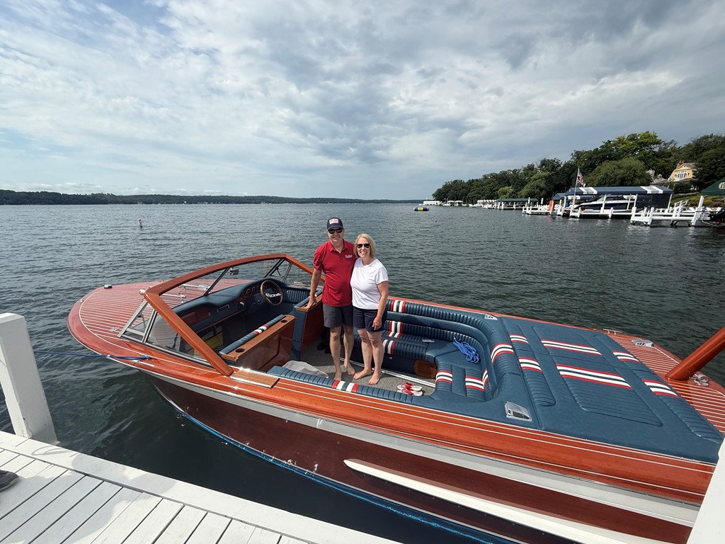 In front of you is the family’s original boat. She holds special meaning to the family as a reminder of our history over the past 65 years. We hope you enjoy seeing this boat here as you reflect back and look forward to building more great boating memories with your family on Lake Geneva.