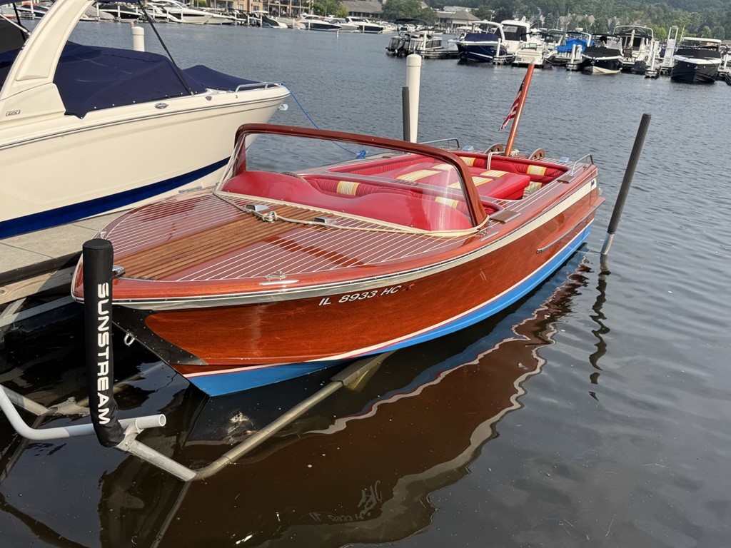 This Shepherd was originally purchased by my Uncle at the Chicago Boat Show in 1961. It has been docked at Pier #1 Lake Geneva ever since. The engine is original.